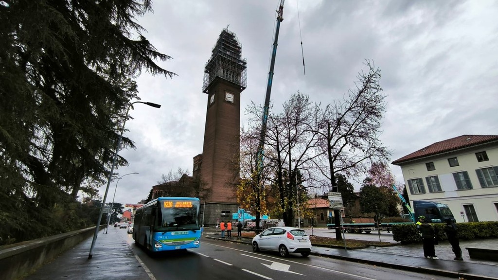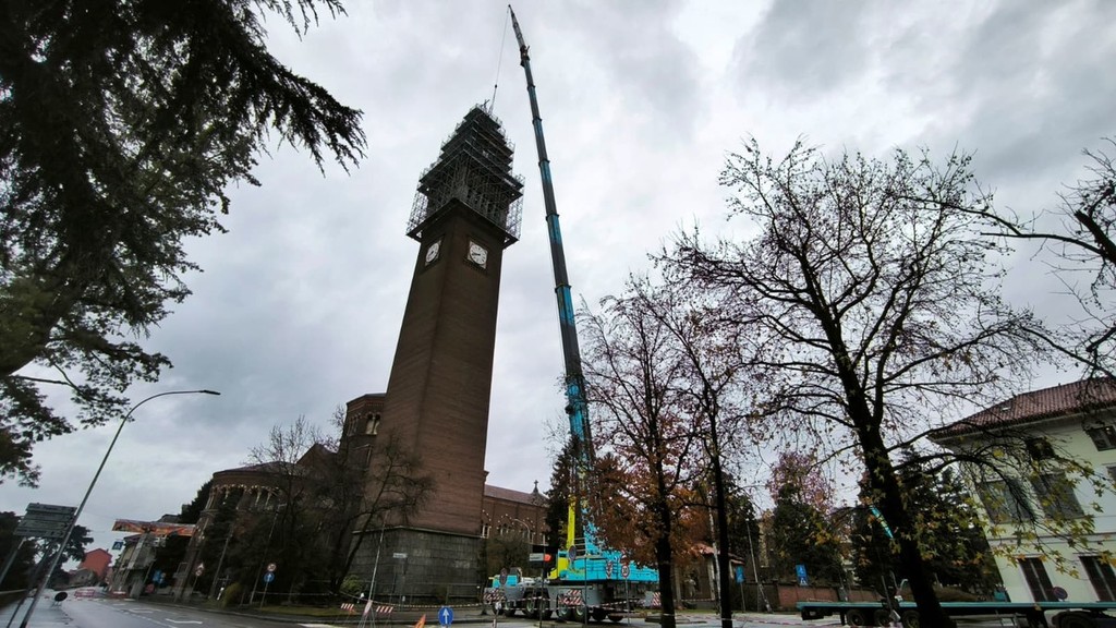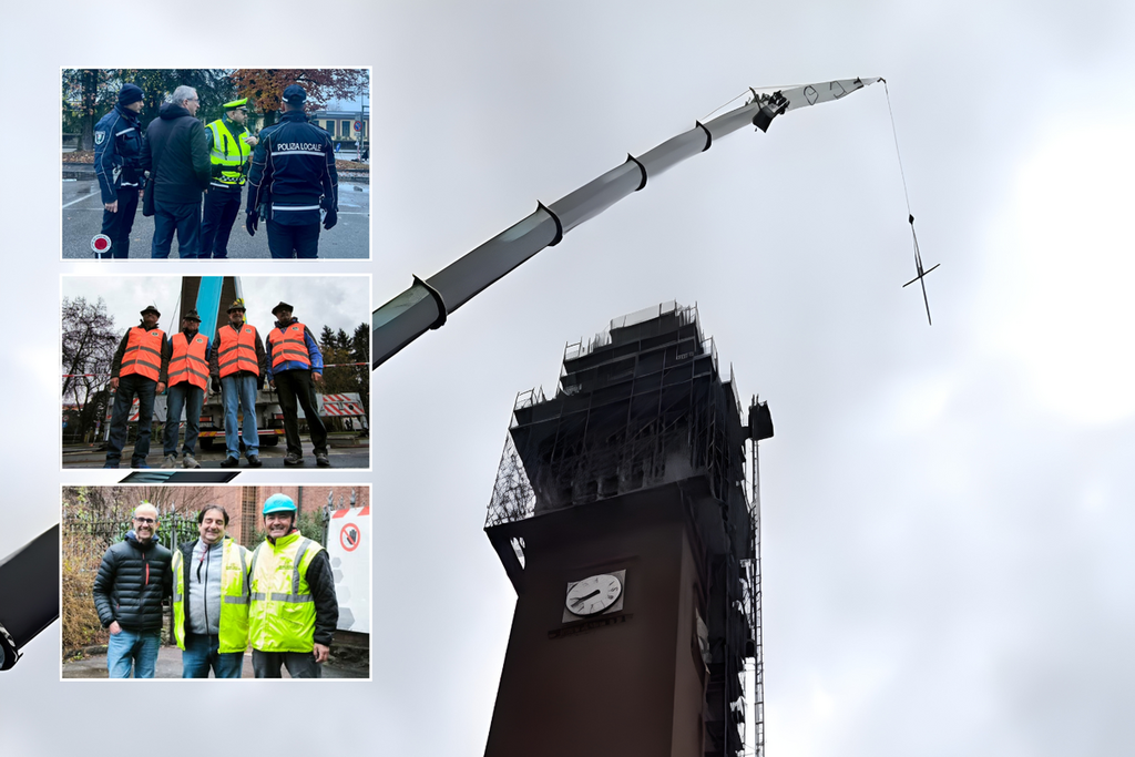 Lassù, sospesi tra la città e le nuvole, cinque tecnici di una ditta specializzata hanno accolto l'arrivo della struttura. L’imbragatura ha tenuto, la mano ferma dei manovratori ha fatto il resto. Una volta posata sul "tetto" del campanile, sono iniziate le operazioni di saldatura e ancoraggio, completate con successo nonostante qualche piccolo contrattempo legato all’acqua, gestito con pazienza e mestiere.