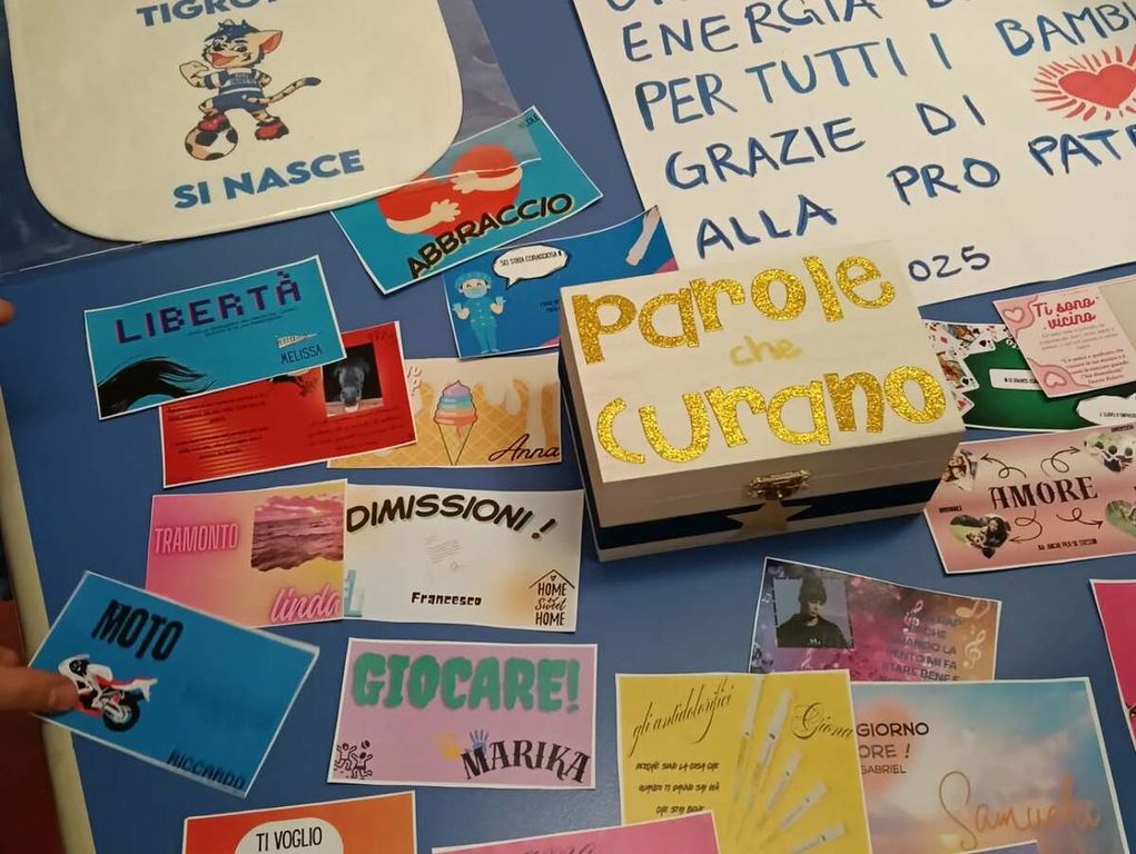 Poi i calciatori Gnonto, Verre e Zamarian si sono piacevolmente prestati ad aprire lo “scrigno magico delle parole che curano”, una raccolta di bigliettini scritti dai piccoli ricoverati con parole e frasi capaci di far stare meglio e di strappare un sorriso dolce a chi li leggerà, com’è davvero stato. Uno scrigno preparato, insieme ai bambini, dalla maestra volontaria della scuola Crespi, Antonella. Insieme al cofanetto, che è stato regalato ai rappresentanti della società, un messaggio forte e sentito: «Un ruggito di energia biancoblù per tutti i bambini. Grazie di cuore alla Pro Patria».
