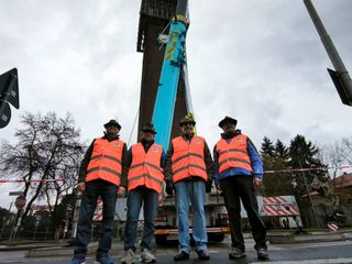 Superato l'ostacolo e liberata l'arteria stradale (via delle Rimembranze e l'area attorno a corso Matteotti), il cantiere ha potuto procedere spedito. La nuova croce, alta otto metri e progettata con bracci a sezione circolare per offrire minore resistenza alle raffiche, ha così sanato quella "mancanza" nello skyline cittadino che durava dal 26 dicembre 2018.