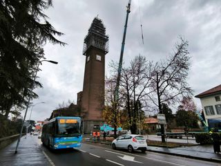 Lassù, sospesi tra la città e le nuvole, cinque tecnici di una ditta specializzata hanno accolto l'arrivo della struttura. L’imbragatura ha tenuto, la mano ferma dei manovratori ha fatto il resto. Una volta posata sul "tetto" del campanile, sono iniziate le operazioni di saldatura e ancoraggio, completate con successo nonostante qualche piccolo contrattempo legato all’acqua, gestito con pazienza e mestiere.