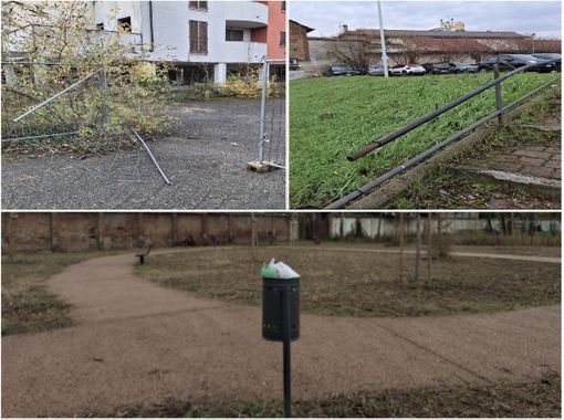 Lo spazio, a dispetto del cancello aperto e di una frequentazione anche umana evidente, non sembra destinato a una fruizione immediata. Non ci sono cartelli con gli orari di apertura né con informazioni, per esempio, sui divieti da rispettare. Appena dentro, alcune bottiglie di birra lasciate a terra fanno intuire party simili a quelli che avvengono nelle pertinenze del condominio incompiuto. Meritano una menzione speciale i cestini della spazzatura. Non sono dotati dei sacchi neri per poter essere svuotati con facilità, come se il loro utilizzo non fosse ancora previsto. Ma ovviamente i bidoncini sono pieni di piccoli rifiuti e sacchetti per le deiezioni canine. Può mancare il classico utilizzo improprio? Ovviamente no, già si vedono i primissimi abbandoni di spazzatura domestica: dove c'è un cestino, ormai, ci sono i pattumeros. Parco (forse) chiuso, cestini (di sicuro) colmi.