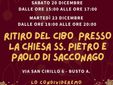 Anche quest’anno è possibile contribuire portando alimenti e condividendo idealmente un posto a tavola con chi è in difficoltà. I ritiri si terranno alla chiesa dei Santi Pietro e Paolo, in via San Cirillo 6 a Busto Arsizio (Sacconago), nelle seguenti date: 13 dicembre, dalle 15:00 alle 17:00 - cibo a lunga conservazione (pasta, scatolame, latte a lunga conservazione, olio, dolci); 20 dicembre, dalle 15:00 alle 17:00 - cibo a lunga conservazione; 23 dicembre, dalle 18:00 alle 20:00 - cibo a lunga conservazione e cibo già cucinato, per garantirne la corretta conservazione.