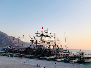 La costa del Mugla alterna calette remote e zone affollate. Ölüdeniz rappresenta uno dei punti in cui questo dualismo è più evidente. Non è un luogo incontaminato, ma un luogo parzialmente addomesticato. La laguna offre contemplazione e silenzio: accessibile, fotografabile, ordinata. È la parte del racconto che procede lenta, come un respiro lungo. Pochi metri più in là, la cittadina spinge nella direzione opposta. Dopo mezzogiorno la musica aumenta, le “navi pirata” imbarcano turisti per i tour costieri e i bar fronte mare si riempiono. Le insegne si accendono in anticipo, ogni attività gareggia per attirare attenzione. La scena è frontale: vitalità dichiarata, commercio, colore. Lo sguardo, qui, è costantemente chiamato a scegliere. È un piccolo bivio, ripetuto decine di volte nell’arco della giornata. Ogni particolare racconta un diverso modo di stare in questo luogo. Molti turisti arrivano dal Nord Europa e dalla Russia: in alcuni periodi la popolazione si moltiplica, passando da poche centinaia di residenti a migliaia di presenze temporanee. Il luogo cambia forma a seconda della stagione, come un organismo che si espande e si ritrae.
