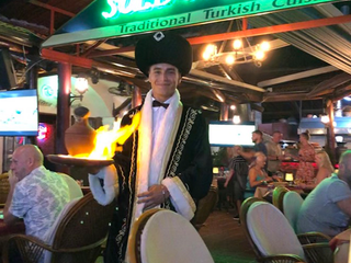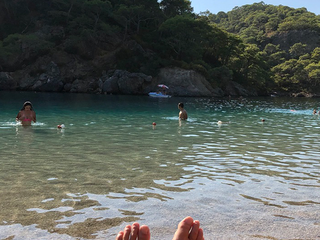 Nel pomeriggio la luce si fa opaca e la zona diventa un osservatorio sociale. I gruppi più rumorosi, i solitari, le famiglie organizzate, i venditori itineranti: frammenti di una stessa immagine. La sera restituisce un ordine. I ristoranti preparano la scena: braci accese, kebab, pesce fresco, piatti che arrivano fumanti, porzioni di frutta servite con piccole coreografie. Il cibo è parte del teatro. La spiaggia ormai è vuota, la temperatura scende. Chi cammina sul bagnasciuga vede solo tre elementi: il buio del mare, il profilo delle montagne e la luce della Luna. La notte non cancella il ritmo del giorno: lo distende soltanto. All’alba il paesaggio torna protagonista e l’atmosfera è di nuovo uguale a se stessa. Le famiglie arrivano presto, prima del caldo, prima del frastuono. La natura riprende il suo posto nel racconto, ma senza rivendicarlo. È un equilibrio discreto. Tutto convive, tutto ritorna. Qui passa anche la Lycian Way, uno dei trekking più noti della Turchia, oltre 500 chilometri tra rovine licie, alture e coste. Chi cammina ne percorre dei tratti, per giorni interi; chi resta in spiaggia lo ignora del tutto. Due viaggi paralleli, stesso punto sulla mappa. Ölüdeniz non cerca di essere una cosa sola. Non ha la purezza intatta di un paradiso e non vuole nemmeno averla. È un territorio condiviso tra contemplazione e intrattenimento, tra silenzi brevi e rumori lunghi. La cittadina offre la cornice, l’uomo la riempie a suo piacimento.
