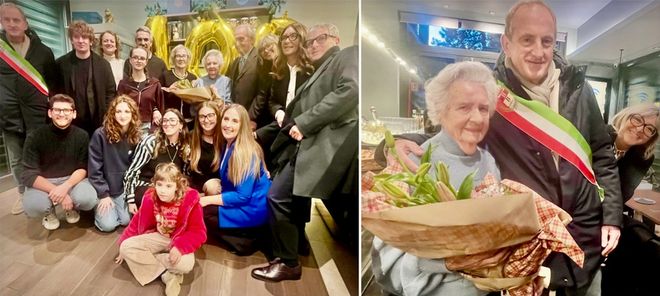 Quando Lucia scende dall'auto e scorge il gioioso movimento alla pasticceria Chiara di Olgiate, quasi non ci crede: tutta quella gente, i rami della sua famiglia, sono lì per lei, per i suoi cento anni. E c'è pure Emanuele Antonelli, il sindaco di Busto Arsizio, città dove lei conduce la sua vita ancora in modo autonomo (rione San Michele), andando anche a fare la spesa.