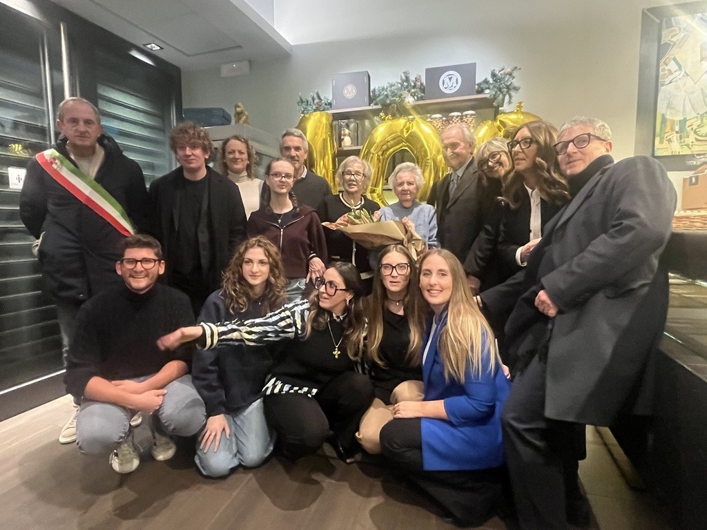 Una festa che emoziona profondamente Lucia Crespi, nata appunto a Busto il 7 dicembre 1925. Diverse generazioni arrivano a renderle omaggio, abbracciarla (e domani ci sarà un bis con un pranzo) e condividere questo momento di pura felicità. Allora prima la consegna degli omaggi da parte del Comune, le foto e quindi a tavola dove arrivano le prelibatezze con torta finale di Fabio Longhin. Lucia accoglie tutti con i suoi occhi azzurri che brillano: è nata sordomuta, ma comunica senza problemi con la sua lucidità e il suo cuore.