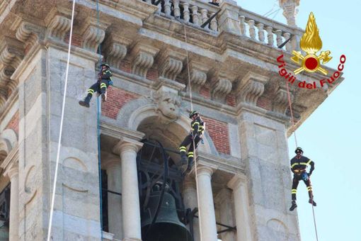 Il personale del Comando, con il supporto del personale dell’Associazione Nazionale dei Vigili del Fuoco, ha garantito lo svolgimento in sicurezza dell’attività, che ha previsto l’impiego di un automezzo con piattaforma aerea, e di un mezzo dedicato al settore Saf con il quale è stata allestita la manovra.