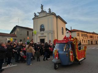 Prima del lancio, il parroco don Giorgio Fantoni ha impartito la benedizione e invitato tutti a prendere parte allo spettacolo di Natale con protagonisti i più piccoli in programma sabato prossimo alle 15 al teatro Manzoni.