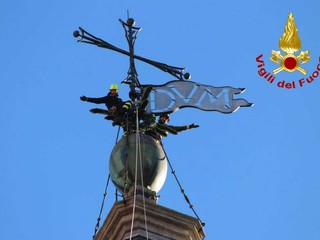 Il personale del Comando, con il supporto del personale dell’Associazione Nazionale dei Vigili del Fuoco, ha garantito lo svolgimento in sicurezza dell’attività, che ha previsto l’impiego di un automezzo con piattaforma aerea, e di un mezzo dedicato al settore Saf con il quale è stata allestita la manovra.