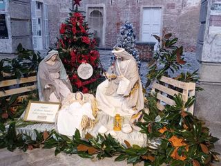 Oggi, giorno dell’Immacolata, è stato benedetto il presepe nel cortile del Castello Visconteo e sono state accese le luminarie. Il parroco don Simone Chiarion: «Il presepio è segno di fede cristiana, ma è capace di andare incontro anche a chi non condivide la fede»