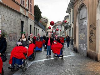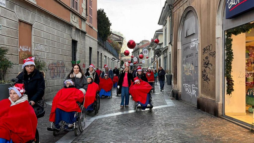 Gallarate si è fermata un momento, nel tardo pomeriggio del 9 dicembre, per lasciarsi attraversare da uno dei cortei più insoliti e commoventi di questo periodo natalizio: un “trenino” composto da una lunga sequenza di carrozzine, spinta con cura dagli operatori, dai volontari, dai familiari e persino da ex dipendenti del Melo Onlus. In tutto 173 persone unite nello stesso movimento collettivo, con un’unica meta: portare gli ospiti della Rsa tra le vie illuminate del centro, per far loro respirare la magia del Natale che dalle finestre della struttura non si può vedere.