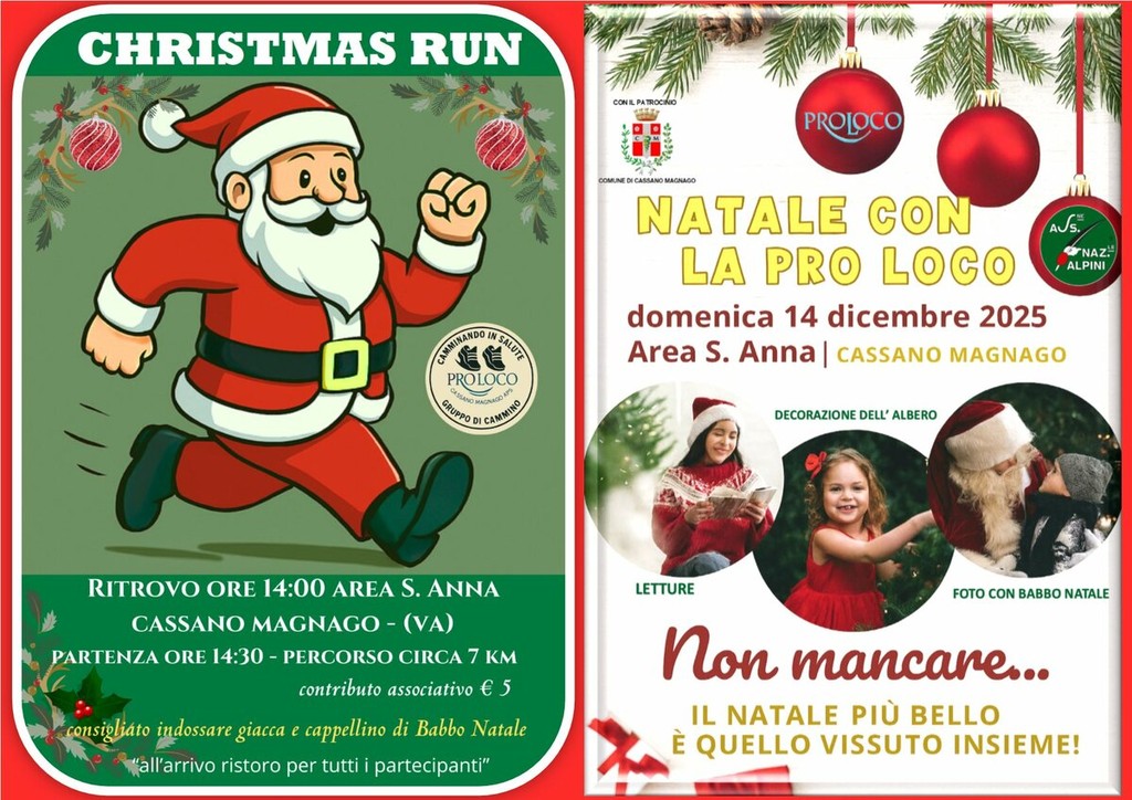 Domenica 14 dicembre la Pro Loco di Cassano Magnago celebrerà con un evento, Patrocinato dal Comune, le festività natalizie presso l’area feste di Sant’Anna.