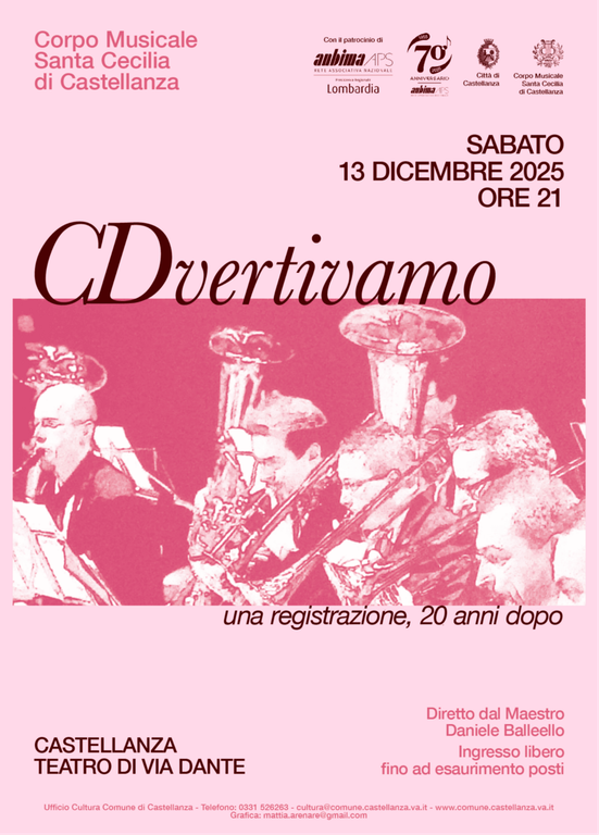 Per informazioni: Massimo Dell’Acqua (presidente del Corpo Musicale Santa Cecilia Castellanza Aps) - tel. 329.6375649.