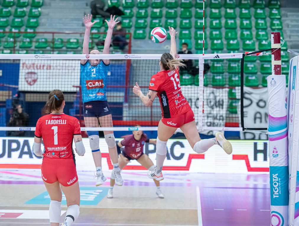 Un’altra prova di maturità, costruita con la formazione tipo ma anche con l’apporto della panchina (Talarico e Orlandi) e con le armi che stanno diventando la firma di questo gruppo: servizio incisivo, muri pesanti e la capacità di non sbandare nei tratti più complicati del match. Mvp di serata, una mostruosa Sophie Blasi (75% di ricezione positiva, 46% di perfetta) cui aggiunge tanto lavoro in fase difensiva. Bena anche la regia di Helena Sassolini e la solita certezza, Alice Farina, al centro (18 con 3 ace, il 71% offensivo e 5 muri), senza dimenticare il contributo delle attaccanti Veronica Taborelli (16 punti col 41%) e Marika Longobardi, a quota 14 col 42% e un super 52% di ricezione perfetta.
