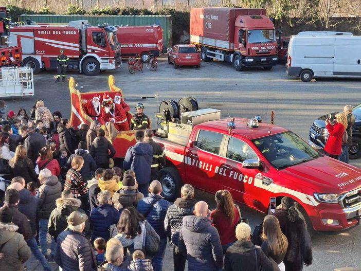 Festa doveva essere e festa è stata, al distaccamento dei Vigili del Fuoco di corso Sempione (foto in fondo). Il copione dell’evento giunto alla 38esima edizione (la presentazione QUI) non ha risparmiato grandi classici e colpi di scena: la distribuzione di caramelle e panettoni, il grande ritorno dell’elicottero che ha sorvolato l’area, l’accademia dei mini pompieri per i più piccoli, l’esposizione di mezzi storici e un intervento fino ai 25 metri del castello per recuperare Babbo Natale, circondato da fumo rosso. Ma l’appuntamento di oggi pomeriggio ha dispensato anche emozioni che vanno molto al di là dello scambio di auguri, del gioco, della solidarietà classica.