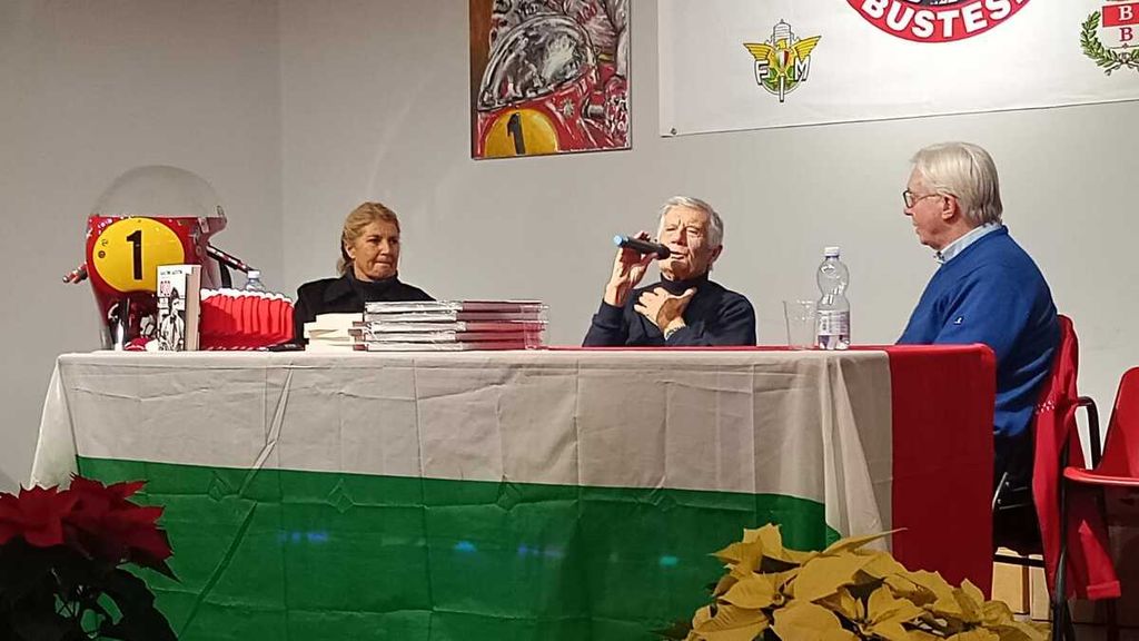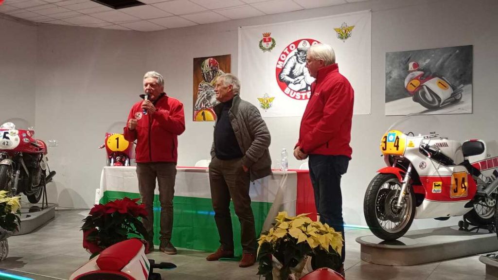 Giacomo Agostini, 15 volte campione del mondo di motociclismo, è stato oggi (13 dicembre) a Busto Arsizio ospite del Moto club Bustese. È in corso infatti al Museo del Tessile la festa del Moto club Bustese che coniuga la passione per le due ruote con la solidarietà (LEGGI QUI).