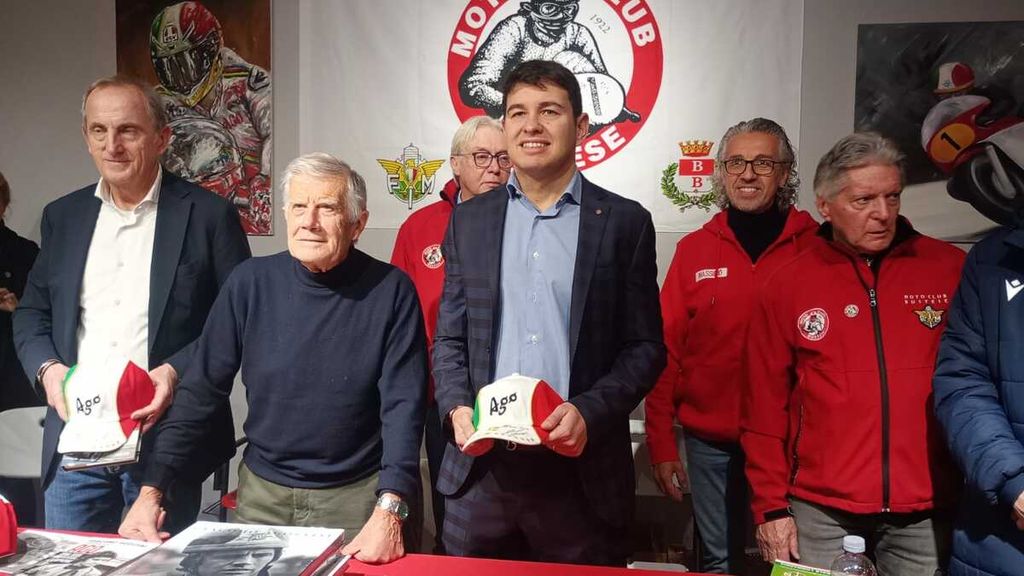 La sala dove ha fatto il suo ingresso Agostini era piena di veicoli in esposizione. Il pilota nato a Brescia nel 1942 è stato accolto, insieme alla moglie Maria Ayuso, dai componenti del Moto club, a cominciare dal presidente Giorgio Giani e dal segretario Alfio Crespi, dal sindaco Emanuele Antonelli e dall’assessore allo sport e vicesindaco Luca Folegani, oltre che da tanti tifosi.