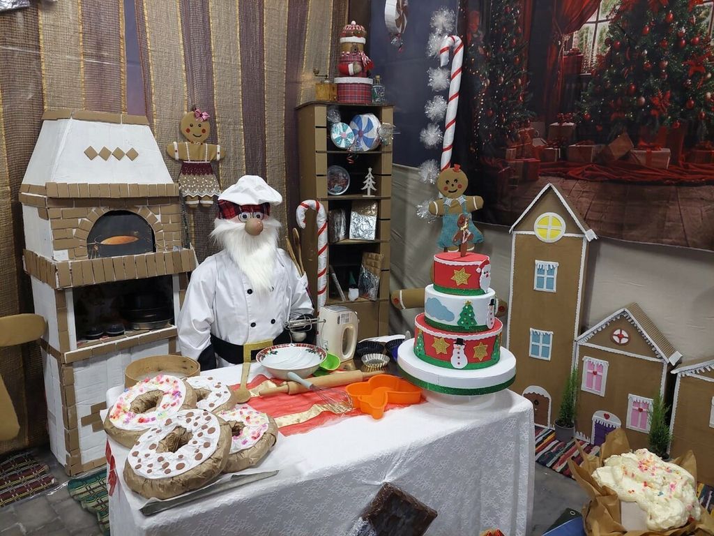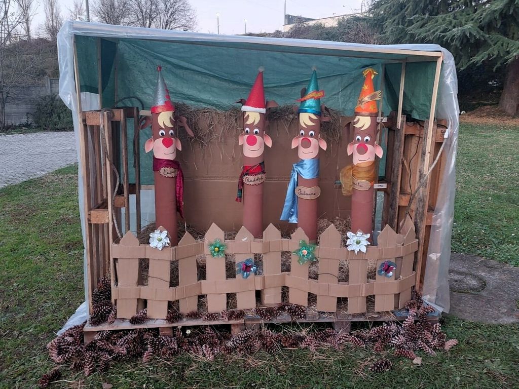 Si tratta di un’installazione completamente originale realizzata da Cristina Gandini, Rosalba Ficarra e Gloria Quaini insieme alle altre volontarie che ogni venerdì sera si ritrovano al centro, per dare vita a meravigliose creazioni artigianali realizzate con amore e passione partendo da materiali di riciclo.