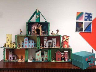 Si tratta di un’installazione completamente originale realizzata da Cristina Gandini, Rosalba Ficarra e Gloria Quaini insieme alle altre volontarie che ogni venerdì sera si ritrovano al centro, per dare vita a meravigliose creazioni artigianali realizzate con amore e passione partendo da materiali di riciclo.
