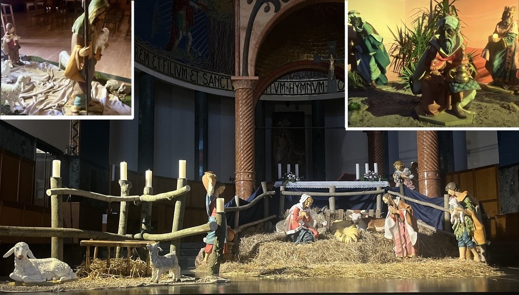 Sull'altare in disparte è fiorita tuttavia un'altra piccola scena: una pecora e un capretto da soli, in un recinto. Tranquilli, ma appartati. «A rappresentare chi si sente un po' estraneo, oppure escluso, oppure impigrito... e perciò "lontano". Ma anche qui una possibilità c'è ed è costituita dalle candele della corona dell'Avvento: ogni domenica una piccola luce accesa dalla Parola di Dio può riportare a Gesù... e nella comunità cristiana». Dall'altra parte ci sono i Magi, che portano culture e testimonianza di popoli diversi, perché tutti possono andare verso Gesù. Ma non è finita, perché «questa settimana il Buon Pastore è andato a cercare la pecora e la capra solitari e si è messo lì, dietro il recinto, a chiamare chi si è perduto».