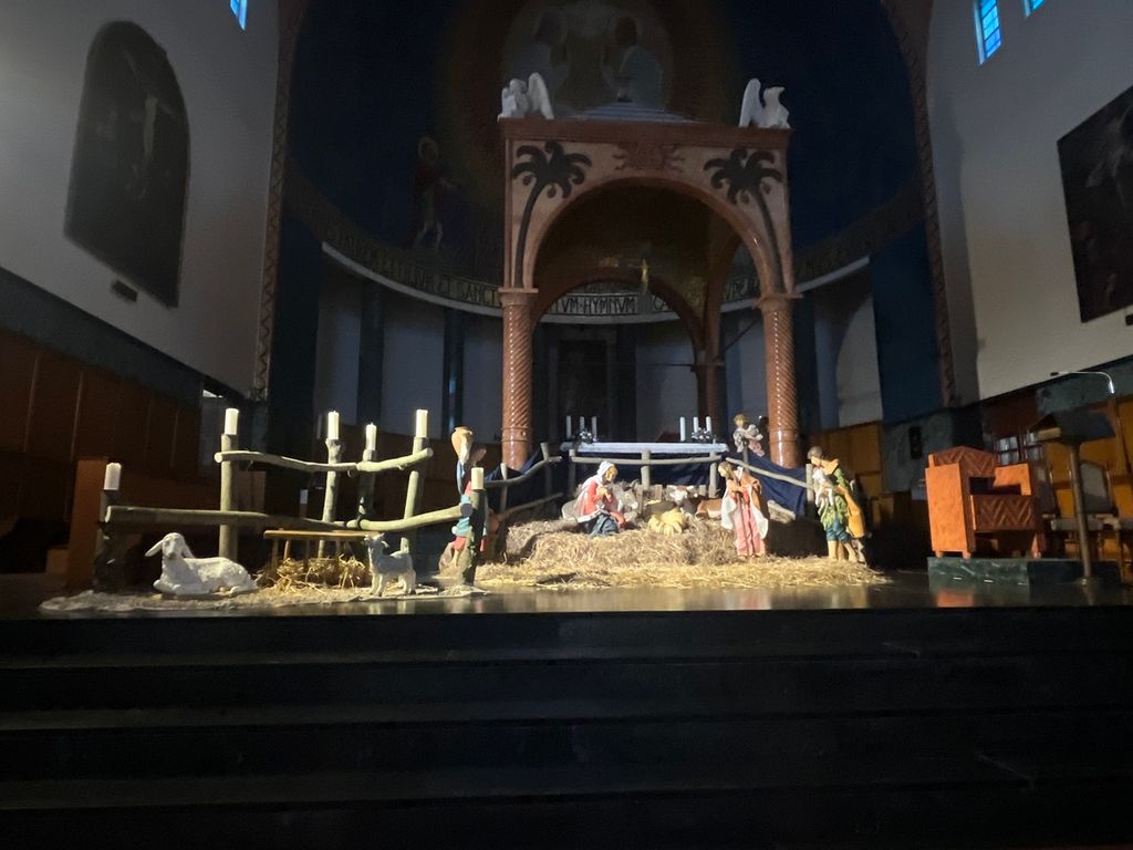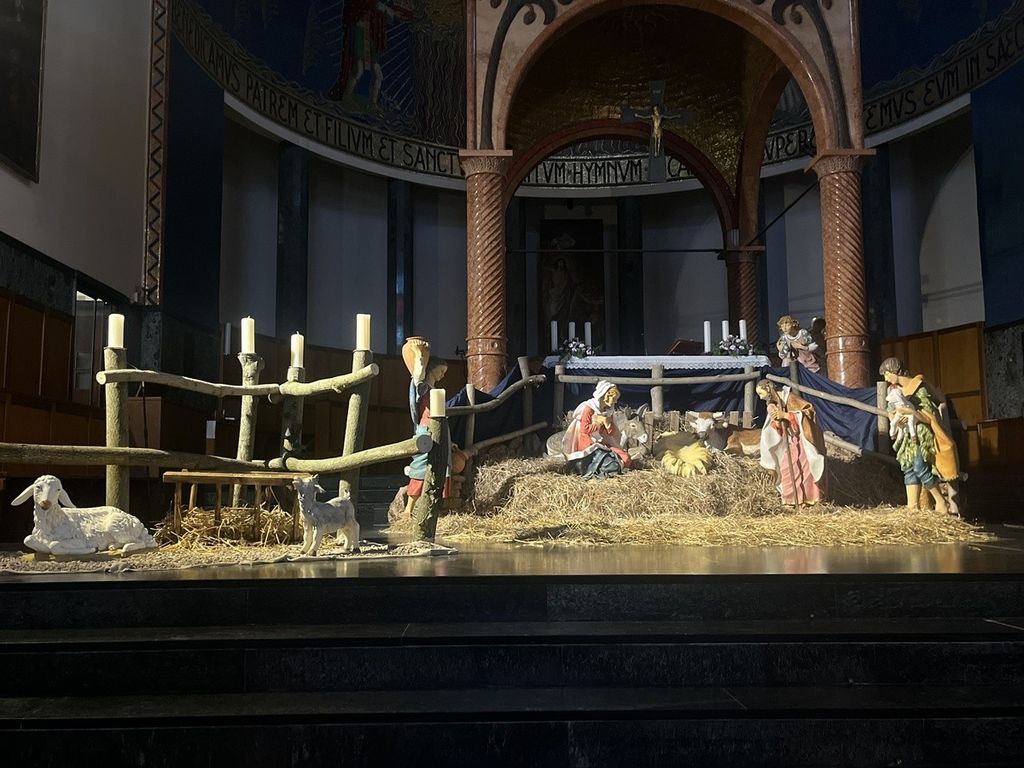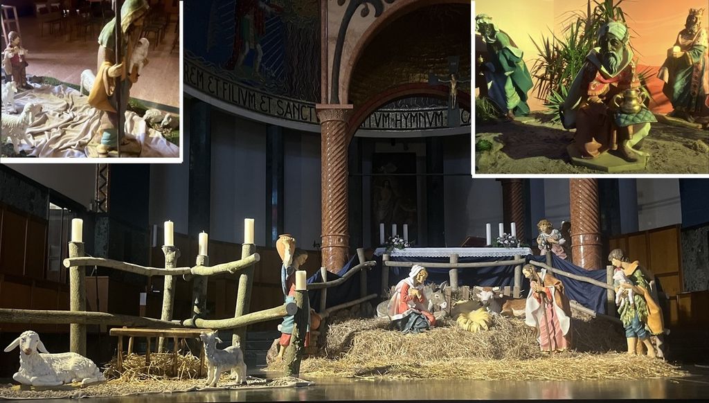 Sull'altare in disparte è fiorita tuttavia un'altra piccola scena: una pecora e un capretto da soli, in un recinto. Tranquilli, ma appartati. «A rappresentare chi si sente un po' estraneo, oppure escluso, oppure impigrito... e perciò "lontano". Ma anche qui una possibilità c'è ed è costituita dalle candele della corona dell'Avvento: ogni domenica una piccola luce accesa dalla Parola di Dio può riportare a Gesù... e nella comunità cristiana». Dall'altra parte ci sono i Magi, che portano culture e testimonianza di popoli diversi, perché tutti possono andare verso Gesù. Ma non è finita, perché «questa settimana il Buon Pastore è andato a cercare la pecora e la capra solitari e si è messo lì, dietro il recinto, a chiamare chi si è perduto».