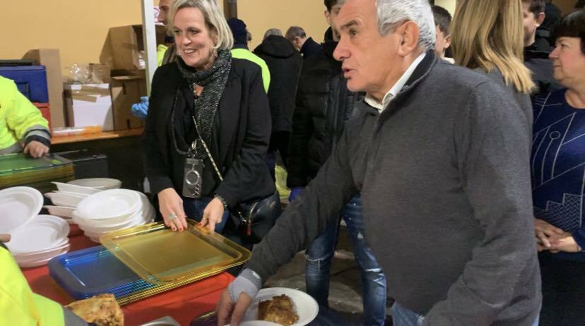 A vestire i panni dei camerieri, come da tradizione in questa occasione, sono stati gli assessori, che hanno servito ai tavoli la polenta e bruscitti preparata dagli alpini e le lasagne cucinate dalla Prociv Augustus.
