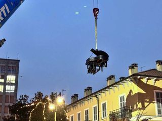 Poco dopo le 17, Paolo Zanarella – conosciuto al pubblico come il «pianista fuori posto» – ha preso posizione al suo strumento per essere poi sollevato da una gru fino a 15 metri d’altezza, muovendosi sorretto da una gru. L’iniziativa, realizzata in collaborazione con Hupac, ha trasformato lo spazio aereo sopra la piazza in un palcoscenico inedito.