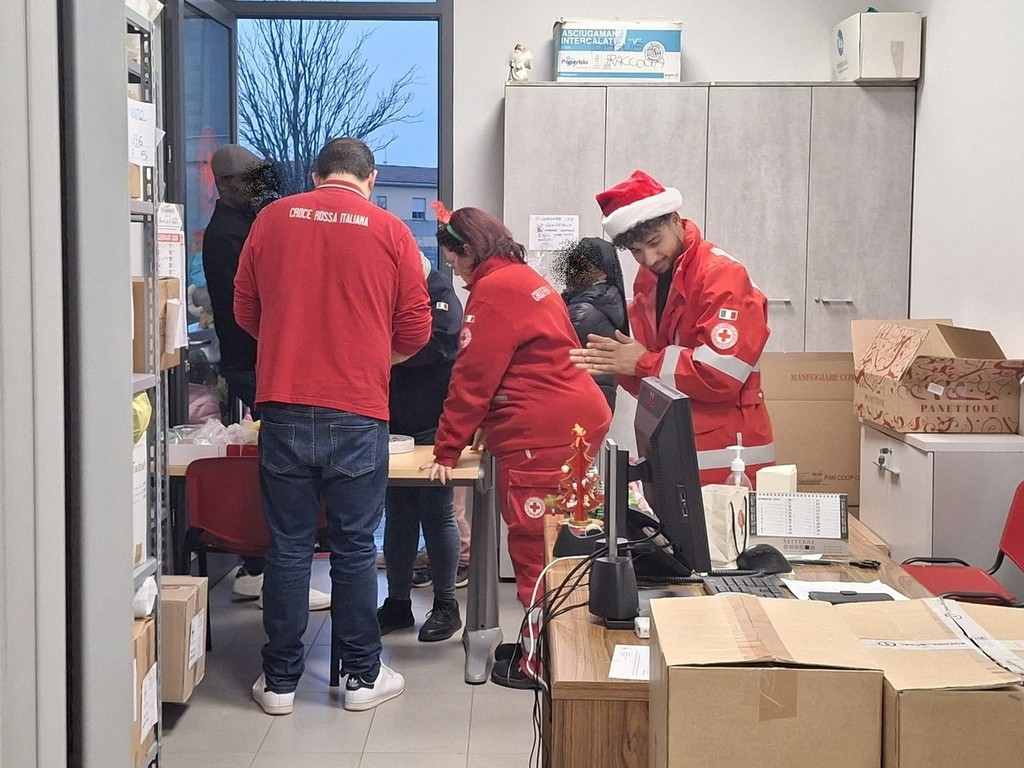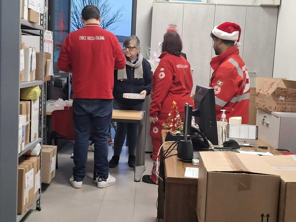 Mentre i bambini scorrazzavano impugnando palloncini e salivano sulle ginocchia di Babbo Natale, circondati da volontari che spalmavano Nutella e affettavano dolci, a un corridoio di distanza, nella postazione discreta appositamente ricavata nella nuova sede Cri, altri volontari incontravano le famiglie destinatarie dei pacchi alimentari. Accoglienza e solidarietà in moto, su due fronti distinti ma accomunati da sorrisi, calore, solidarietà.