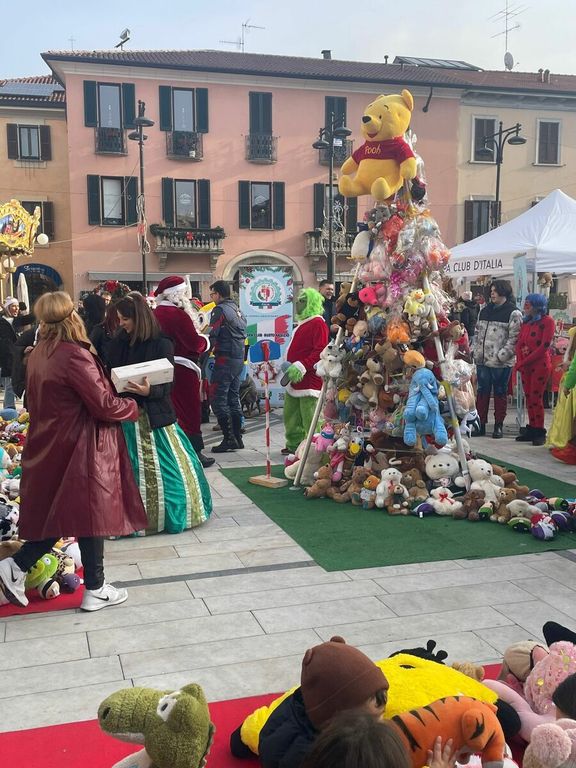 Spettacolo che la città, nota per il suo grande cuore, offre spesso ma il paesaggio di oggi toglieva davvero il fiato grazie all'iniziativa del Vespa Club Busto Arsizio con l'associazioni Cuorieroi. Babbo Natale è arrivato in vespa (LEGGI QUI) e si è subito dato da fare per rendere felici i bambini. Due volte: quelli che giungevano in piazza Santa Maria e vedevano la marea di peluche (tra i 2 e i 3mila). Un vero e proprio Albero che ha accolto i piccoli.