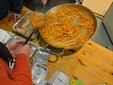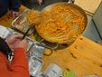 Il cibo che ci è stato donato è stato portato presso l'oratorio di San Luigi (parrocchia San Giovanni) e da lì ha seguito due strade distinte. Il cibo inscatolato (pasta, scatolame, sughi, panettoni, pandori...), è stato raggruppato in scatoloni e donato alle famiglie bisognose segnalateci da alcuni enti caritatevoli della nostra città, mentre il cibo già cucinato è stato scaldato e portato nel nuovo locale mensa posto a fianco della stazione FS di Busto Arsizio, dove i nostri ospiti hanno potuto sedersi in un luogo caldo e gustare un ottima cena a base di patatine e pizzette (donateci da un bar di Samarate, insieme a dolci e ad altri prodotti) pasta e lasagne, insalata di uova, piselli e tonno, pollo e dolci da pasticceria. Il cibo già cucinato in eccedenza è stato consegnato ai frati di Busto (rispettando ovviamente la catena del freddo) e verrà donato alle persone in difficoltà il 26 dicembre sempre nel nuovo locale mensa a fianco della stazione FS.