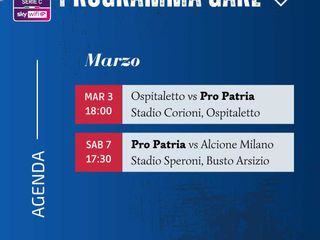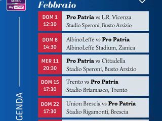 La squadra tornerà a casa allo “Speroni” per affrontare nello scontro diretto la Virtus Verona sabato 28 febbraio alle 17.30, mentre la 30^ giornata vedrà un’altra trasferta, infrasettimanale contro l’Ospitaletto Franciacorta, martedì 3 marzo alle 18.00. Infine, sabato 7 marzo alle 17.30, la Pro Patria chiuderà questo ciclo contro l’Alcione Milano tra le mura amiche, cercando punti preziosi per scalare - necessariamente - la classifica.
