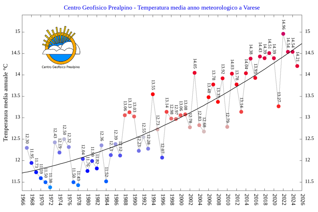 Il 2025 a Varese è stato il nono anno più caldo con temperatura di 0,8°C superiore alla media del trentennio di riferimento più recente