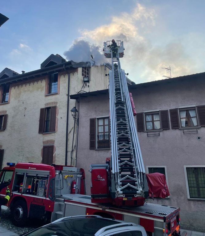 FOTO. Fiamme in centro a Daverio, in azione i vigili del fuoco