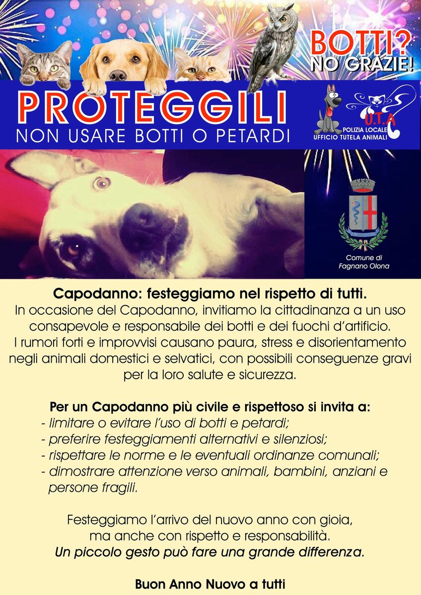 Anche l'amministrazione di Solbiate Olona ha raccomandato di essere responsabili e attenti. Dall'acquisto di prodotti conformi all'avvertenza di non raccogliere eventuali artifici inesplosi, si spiega, e avvisare piuttosto le forze dell'ordine. Anche con una serie di consigli per gli animali domestici (vedi allegato).