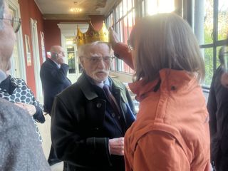 Già benemerito, indossò pure la fascia tricolore in occasione della proclamazione (con tanto di cartello sul palco che gridava "sindaco di Sacconago"), oggi gli è pure arrivata scherzosamente la corona. E lui ha sentenziato: «Come Napoleone dico: Dio me l'ha data e guai a chi me la tocca». Ma in realtà l'ha riposta presto, Ginetto, pur tenendola d'occhio sulla sedia, perché altrimenti non sarebbe riuscito ad abbracciare tutti. La famiglia ha organizzato una festa con i fiocchi, che è stata anticipata da un momento ufficiale con il Comune. Il sindaco Emanuele Antonelli ha telefonato per manifestargli l'affetto e la gratitudine: «Ma quali cento, ne hai compiuti cinquanta. Grazie per ciò che hai fatto e continuerai a fare per Busto». L'assessore Manuela Maffioli ha voluto sottolineare l'importanza di un anniversario connesso: i 50 anni della Famiglia Sinaghina, rappresentata oggi da Augusta Grilli e dal past president Rolando Pizzoli, un filo rosso che conduce a Ginetto, all'importanza di mantenere e tramandare le tradizioni. Quindi il vicesindaco Luca Folegani ha voluto ricordare come da bambino a scuola avesse ricevuto una visita di Ginetto Grilli, che trasmetteva il valore della lingua bustocca. E sinaghina, ovviamente.