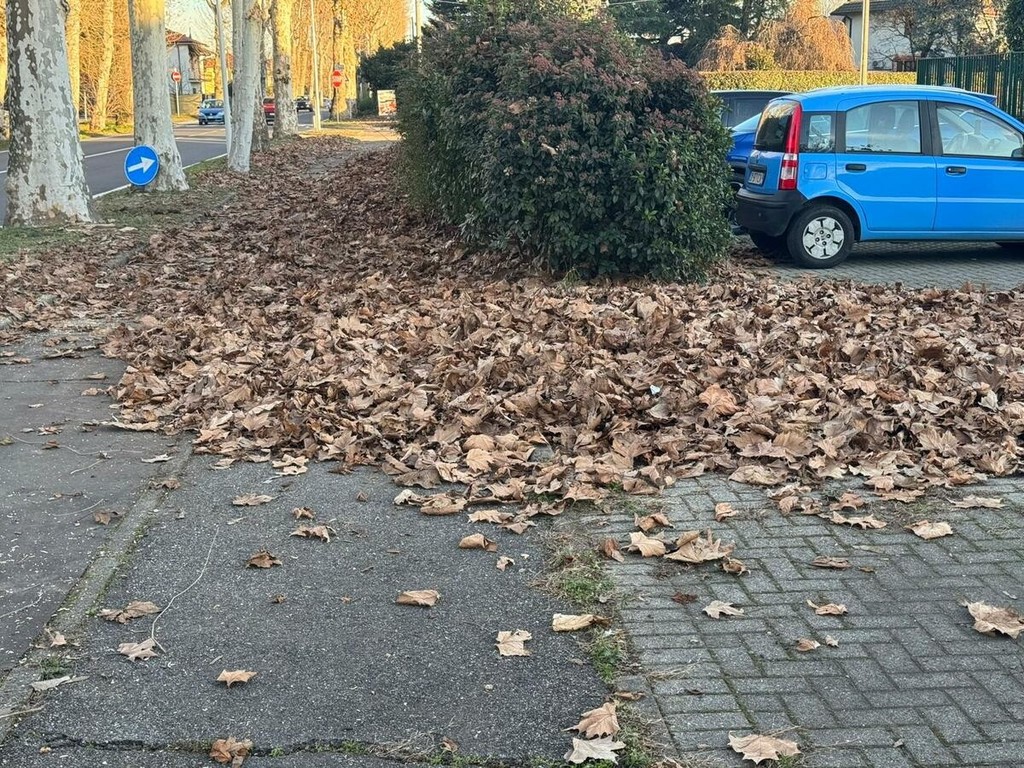 Cumuli di foglie mai raccolte che diventano esca per incendi e una pista ciclabile "fantasma" perché completamente sepolta dalla vegetazione. La situazione in viale Toscana, a Borsano, è tornata al centro dell'attenzione dopo un rogo scoppiato proprio a pochi passi dal confine con Dairago e Magnago.
