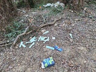 Sacchetti colmi di spazzatura vengono, con ogni evidenza, lanciati direttamente dalle auto. Spesso restano impigliati alla vegetazione, rimangono appesi, magari bucati, ai rami, si rompono o deteriorano al contatto col suolo. In altri casi, carichi più impegnativi hanno l’aria di essere stati trasportati con mezzi parcheggiati a bordo strada.