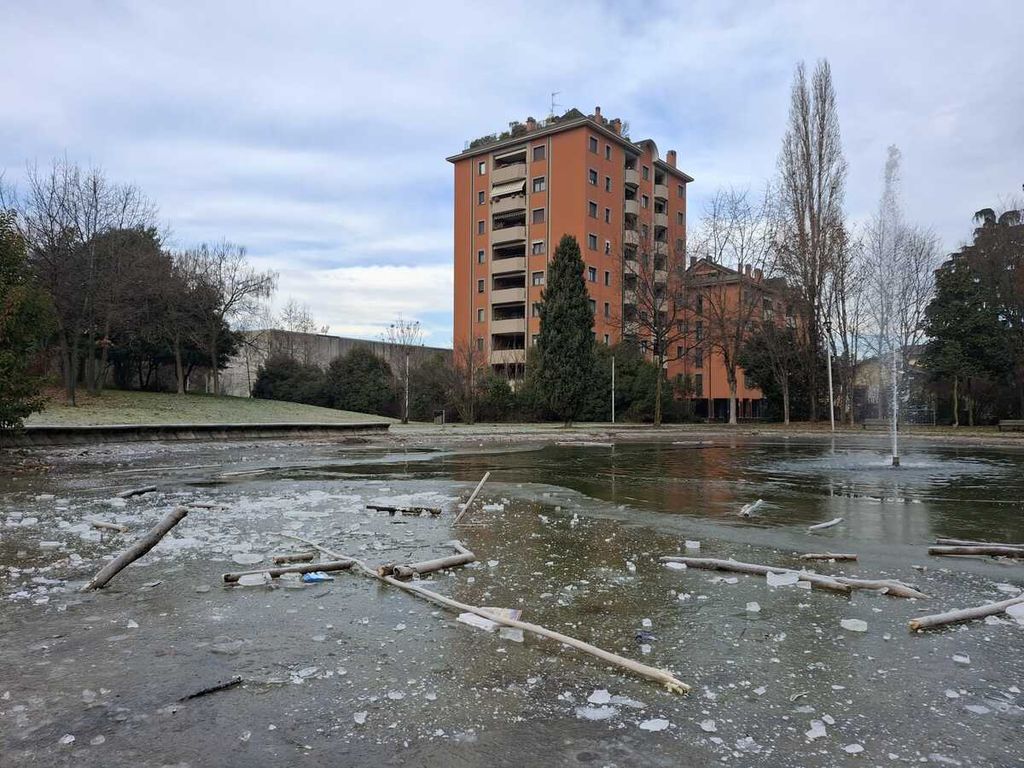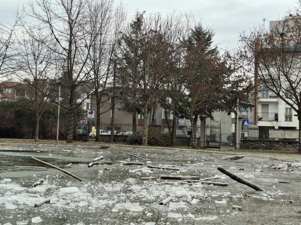 Da dove provengano i rami che sono stati gettati nel laghetto del parco Comerio non è dato sapere. Sono il risultato di un taglio avvenuto nell’area verde? Indizi non ce ne sono, certo è che qualcuno li ha presi e gettati in acqua. Ora sono lì, immobilizzati nel ghiaccio, in compagnia di cartacce e oggetti in plastica, forse anch’essi buttati volontariamente, forse trasportati dal vento.
