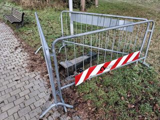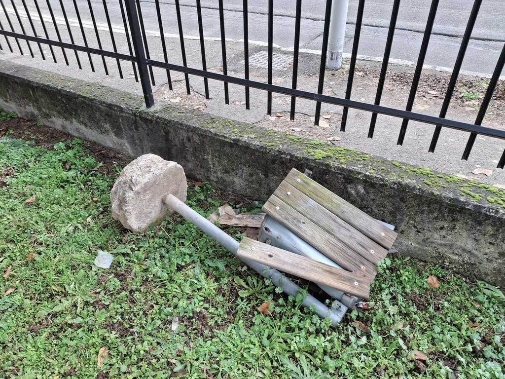 Lo spettacolo, nel complesso, è squallido, anche perché viene completato da ulteriori dettagli, nei pressi dell’area giochi. Una “vedovella” giace a terra, probabilmente divelta da vandali. La circondano le transenne di Agesp, che evidentemente ha preso in carico il problema. Poco lontano, un cestino, rovesciato e sfasciato, è stato portato a ridosso della recinzione. Piccoli rifiuti spuntano un po' ovunque (foto in fondo).