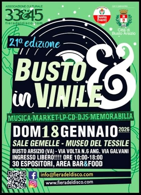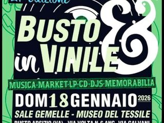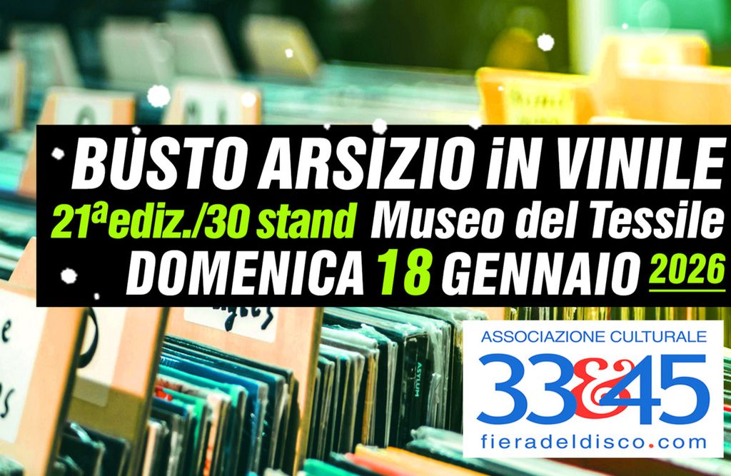 L’Associazione 33&45, con il patrocinio del Comune di Busto Arsizio, inaugura il nuovo anno con la tanto attesa e classicissima nuova edizione di Busto Arsizio in Vinile, la ventunesima Festa della musica ed expo - Mercato scambio del disco, ospitata al Museo del Tessile (via Volta 6, angolo via Galvani).