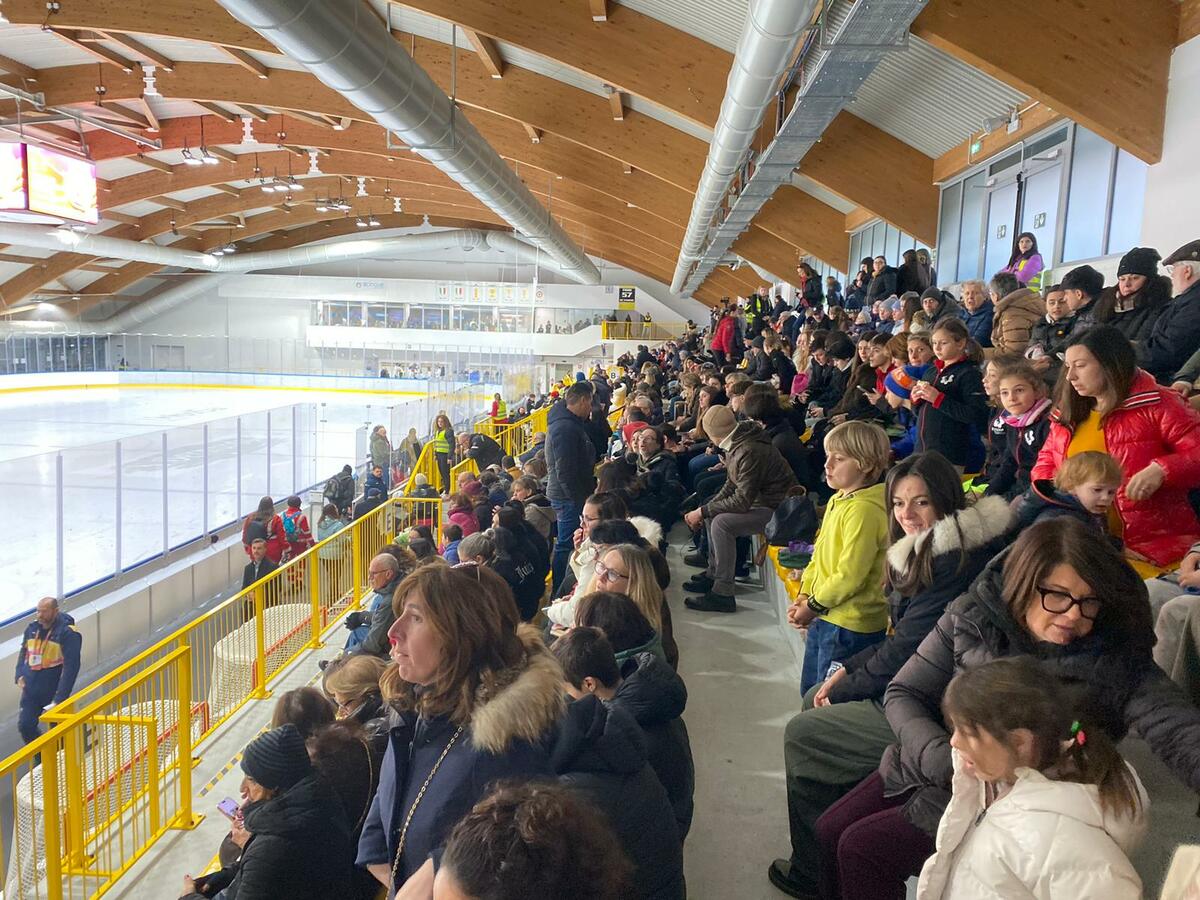 17.27 - L'Acinque Ice Arena si è ormai riempita. Lo spettacolo sta per iniziare