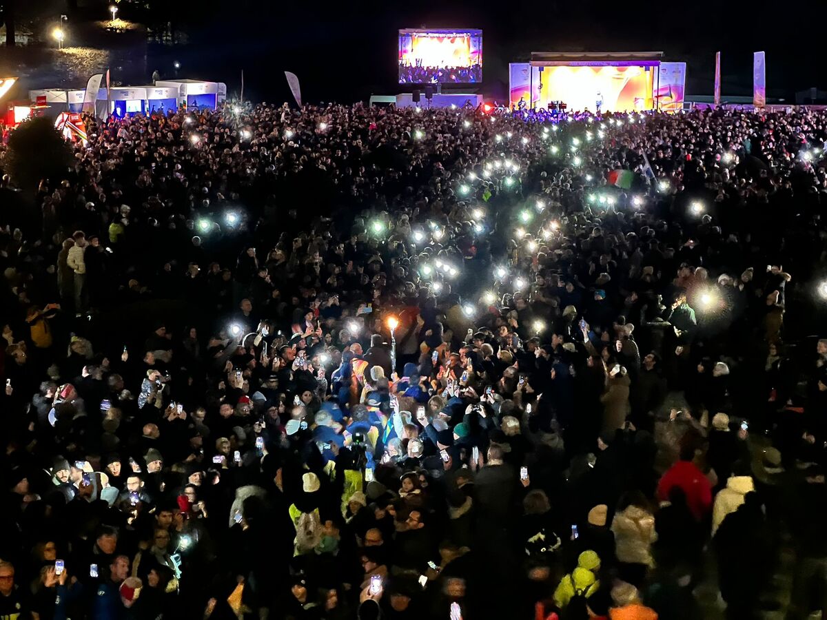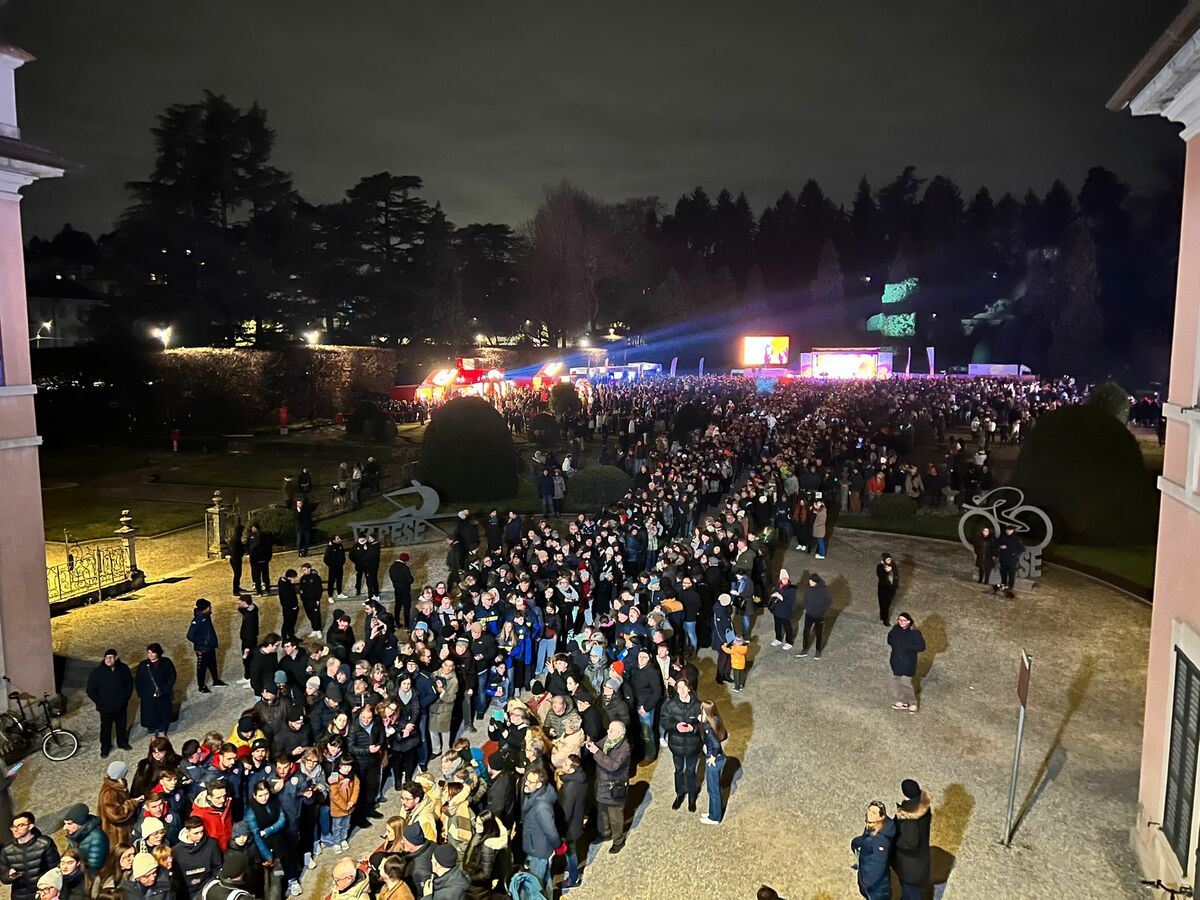 20.04 - E ora i video ripresi dalla folla e in primo piano dell'accensione del braciere nel cuore dei Giardini Estensi con l'ultimo tedoforo, la straordinaria Daniela Colonna Preti, presidente e simbolo della Polha, degli atleti paralimpici e dei valori di Olimpia, sul palco con la fiaccola per dare il via da Varese alla volata della Lombardia verso i Giochi Milano Cortina 2026