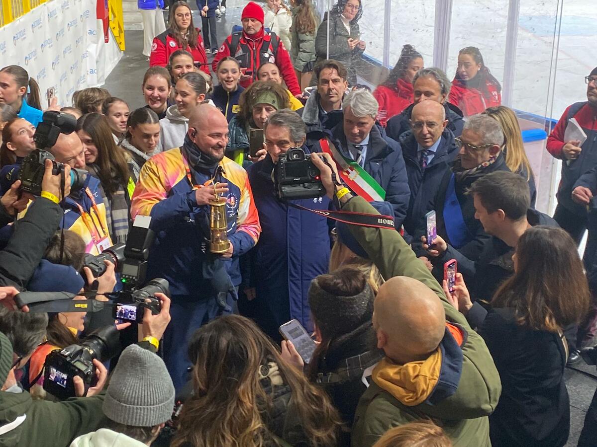 18.40 - Attilio Fontana è sul ghiaccio: «Arriva il fuoco olimpico in Lombardia da Varese, che merita questa serata»