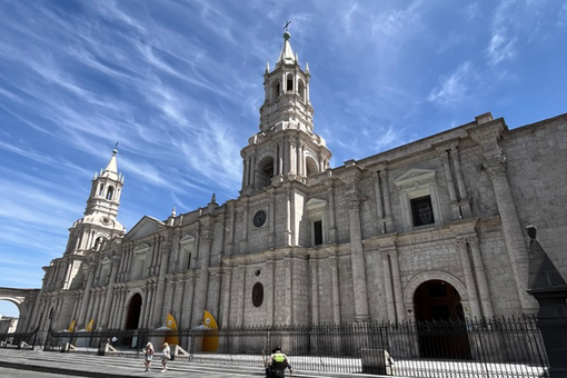 Qui, invece, tutto comincia a salire. Non solo l’altitudine, ma la percezione dello spazio e del tempo. Arequipa non appare come un miraggio nel deserto, non cerca l’effetto scenografico. Si presenta solida, compatta, costruita per durare. I primi quartieri sono disordinati, attraversati da un traffico che sembra ignorare qualsiasi regola, da mototaxi che sfrecciano tra le corsie come insetti rumorosi.