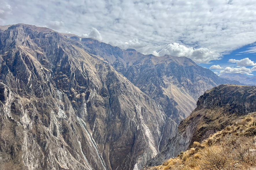 Poi c’è il Canyon del Colca che non si mostra subito. Si lascia intuire, come una ferita che si apre lentamente nella montagna. Al Cruz del Cóndor, il vuoto diventa protagonista. Il silenzio è interrotto solo dal vento e dall’attesa. Quando il condor appare, non c’è spettacolo, non c’è enfasi. Il suo volo è lento, preciso, necessario. Planare qui significa conoscere le correnti, accettare la profondità, fidarsi dell’aria. Non è un’esibizione: è sopravvivenza. Davanti a questa immensità, tutto si ridimensiona. Le parole diventano superflue, i pensieri si semplificano. Le Ande non promettono nulla. Non accolgono ma non respingono. Esistono punto e basta. Il sentiero stringe, la roccia assorbe il calore, il respiro si fa sentire. Ogni passo pesa. I terrazzamenti emergono come tracce di resistenza. Camminare nel Colca è vivere lo stupore come misura del paesaggio.