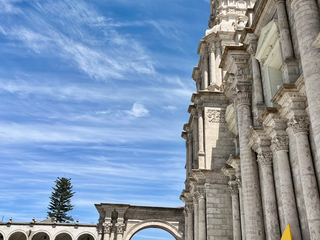 Ma è solo avvicinandosi al centro che la città rivela la sua vera natura.La pietra chiara del “Sillar” domina lo sguardo. Riflette la luce con una forza quasi abbagliante, disegna volumi netti, contorni precisi. È da qui che nasce il soprannome di “Ciudad Blanca”, ma ridurre Arequipa a una questione cromatica sarebbe un errore. Il bianco non è solo estetica. Questa è una città costruita ai piedi dei vulcani, su una terra instabile, e lo ricorda in ogni dettaglio. Nulla è leggero, nulla è solo bello. Nel centro storico, tutto cambia passo. Il rumore si attenua, le strade si fanno più ordinate, come se il luogo imponesse spontaneamente una disciplina. Nella Plaza de Armas, ogni dettaglio trova una misura. I porticati, le arcate, la facciata della Catedral: sono elementi al posto giusto, senza ostentazione. Di sera, l’ambiente si trasforma. Le luci calde scolpiscono la pietra, l’acqua delle fontane riflette le torri come se volesse trattenerle. Arequipa non cerca l’effetto immediato. Si lascia scoprire attraverso i dettagli: i portali barocchi consumati dal tempo, le finestre incorniciate da secoli di sole, i bassorilievi che raccontano una fede concreta.