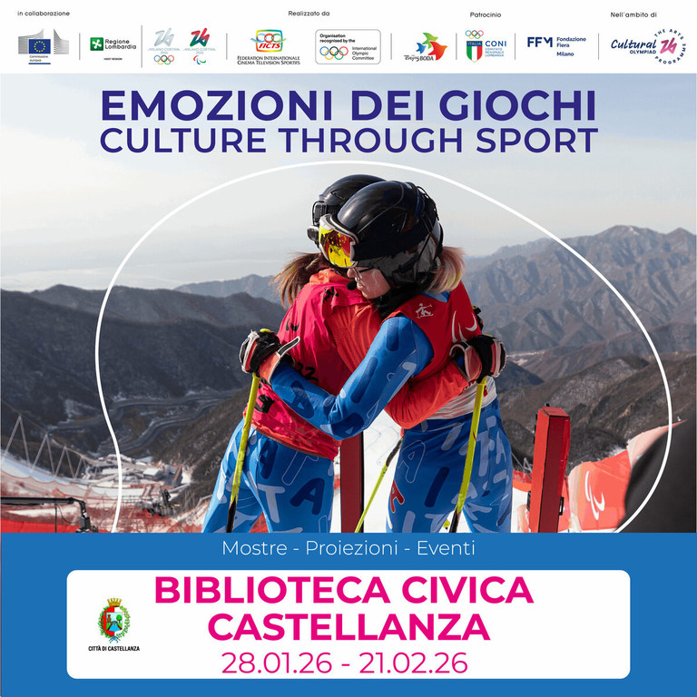 Dal 28 gennaio al 21 febbraio 2026 la Biblioteca Civica di Castellanza ospiterà la Mostra “Emozioni dei Giochi - Culture Through Sport”, promossa dal Comune di Castellanza, SportPiu e LeGuns ASD, e realizzata dalla FICTS – Fédération Internationale Cinéma Télévision Sportifs in collaborazione con Fondazione Fiera Milano e Commissione Europea - Rappresentanza a Milano. Il progetto, coerente con il programma culturale di Regione Lombardia, è inserito nel palinsesto dell’Olimpiade Culturale di Milano Cortina 2026 con lo scopo di promuovere i valori dei Giochi Olimpici e Paralimpici attraverso la cultura, il patrimonio e lo sport.