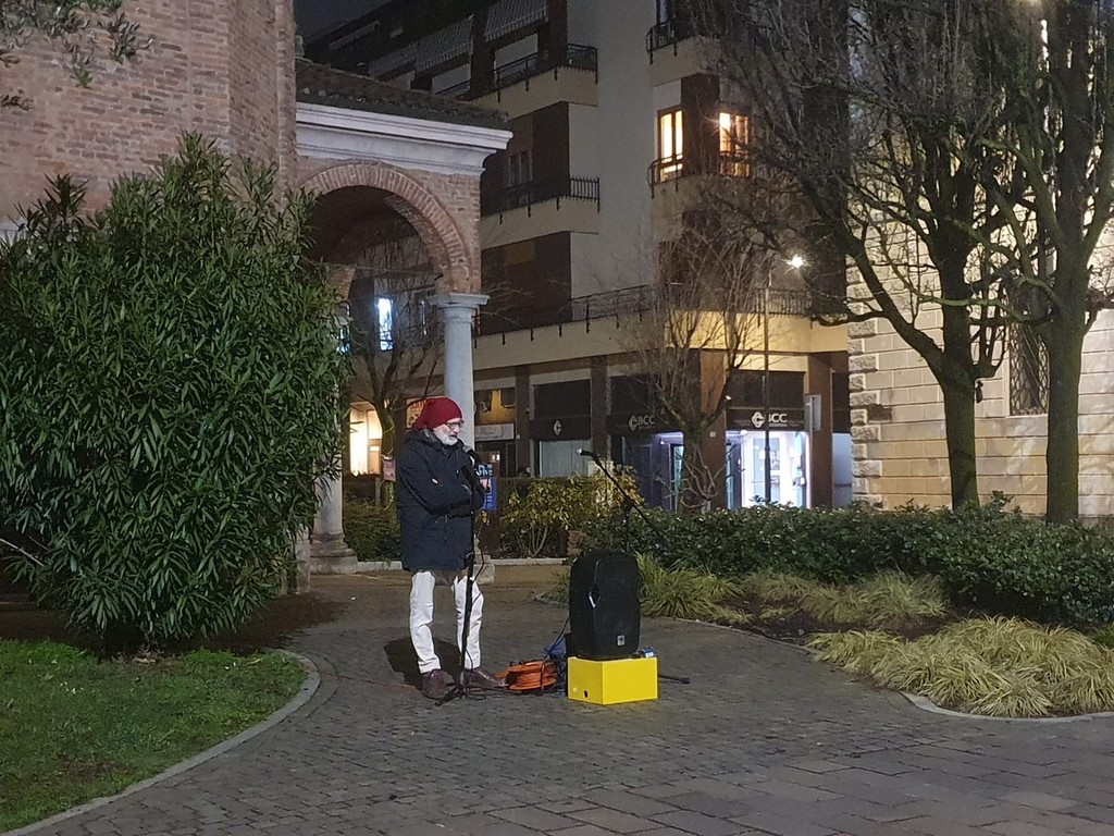 «Oggi non sapere è scegliere di non vedere, di non sentire, di non parlare come le scimmiette ammaestrate», ha esordito al microfono Elis Ferracini, invitando a non essere «indifferenti» davanti a quello che accade. «Vale oggi come ieri quel grido, “Mai più”, trasformatosi in breve in “A tra poco”. Stasera chiediamo ai presenti di metterci in mezzo, corpo, mente e cuore tra passato e presente».
