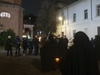 E domenica sera, in vista del 27 gennaio, Giornata della Memoria dedicata alle vittime della Shoah, questo accostamento ha trovato concretezza nella rappresentazione portata in scena davanti al Tempio civico, accanto al municipio, dove alcuni attori, ugualmente vestiti di nero e incappucciati, hanno interpretato deportati nei campi di sterminio e vittime di Gaza.