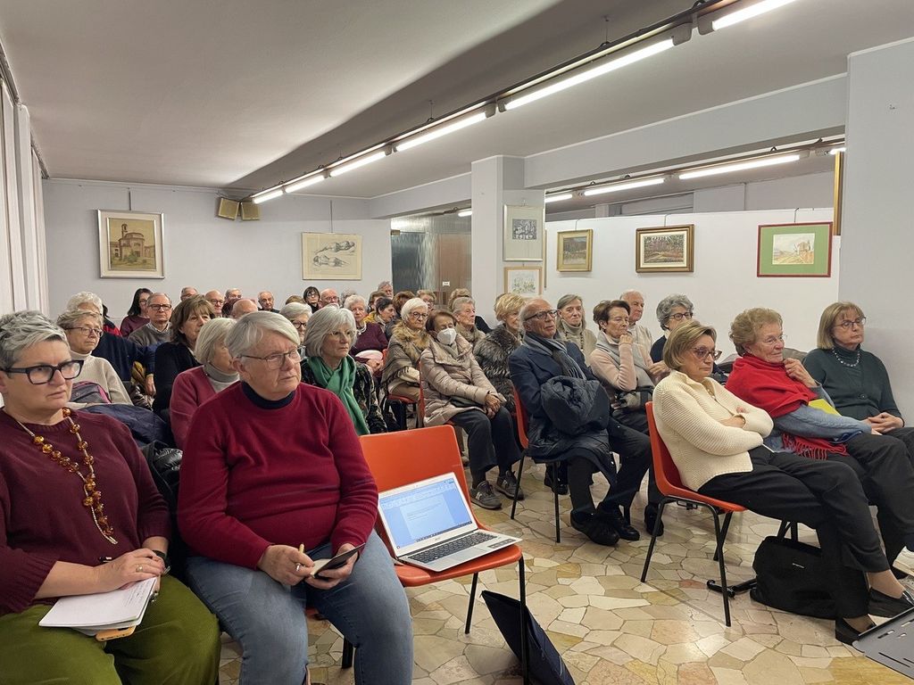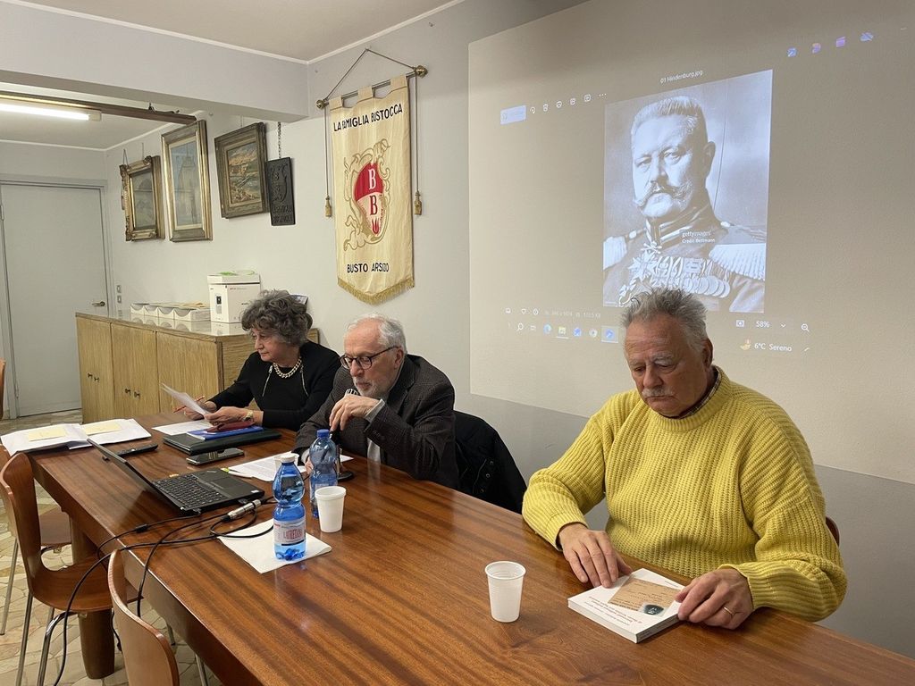 Ad aprire l’incontro è Mariella Toia, presidente della Famiglia bustocca, con parole che fissano subito il senso profondo della serata. “Siamo qui per non dimenticare”, ricorda, richiamando gli ottant’anni trascorsi da quei fatti che segnarono l’Italia e la Germania. E aggiunge, con un’amarezza che attraversa l’intera sala, di non riuscire ancora a capacitarsi di come un popolo così elevato culturalmente sia potuto precipitare in una simile barbarie. La memoria, sottolinea, non è un rito, ma un argine.